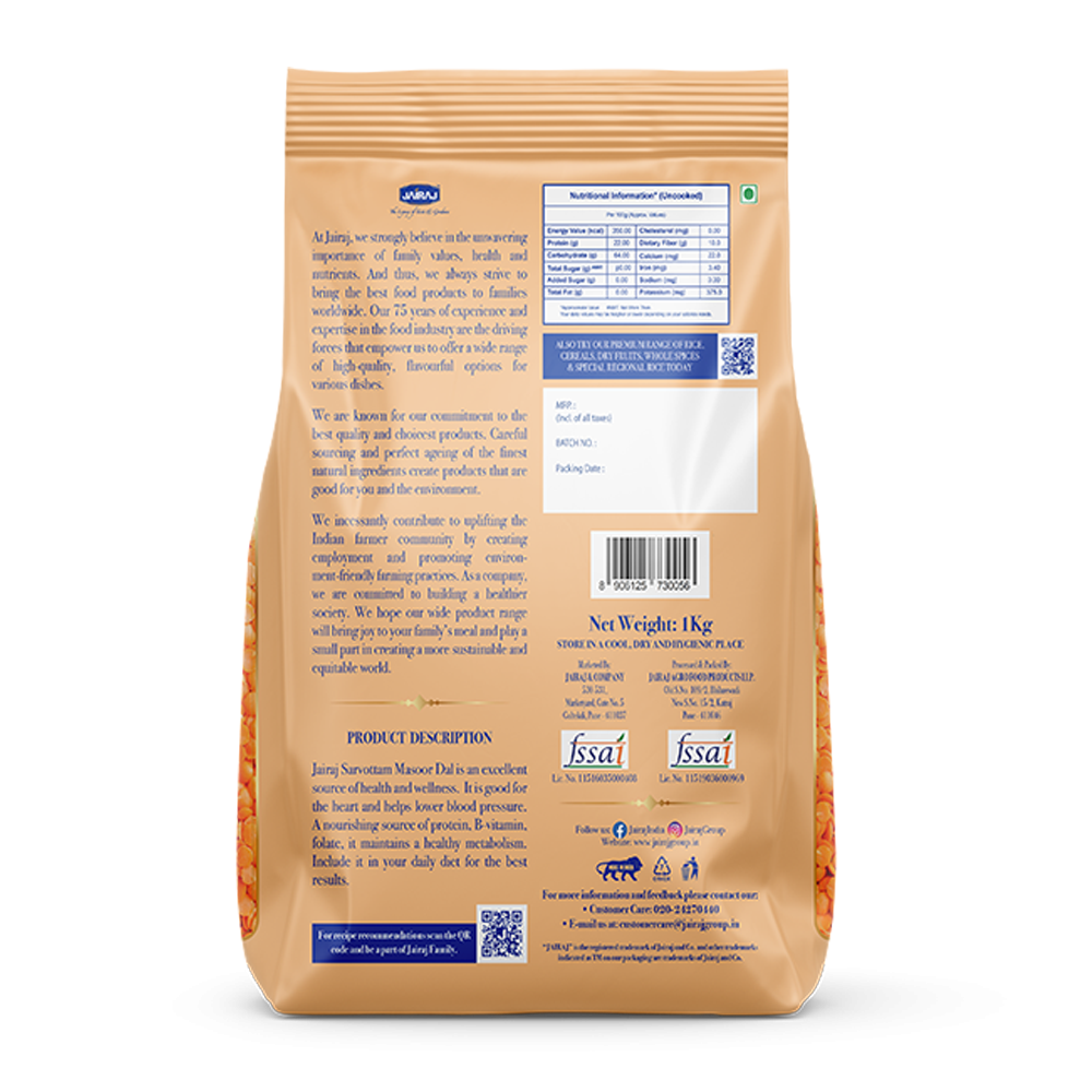 Jairaj Sarvottam Masoor Dal is an excellent source of health and