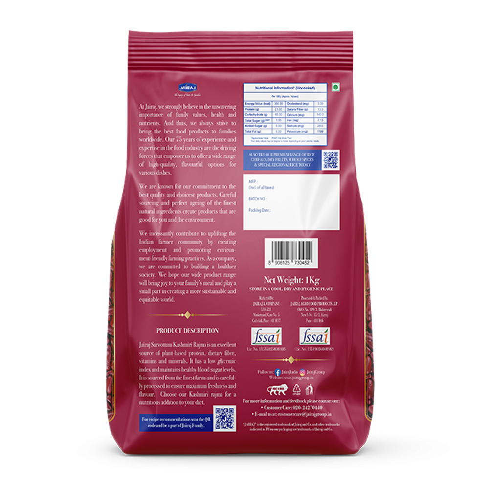 Jairaj Sarvottam Kashmiri Rajma is an excellent source of plant-based