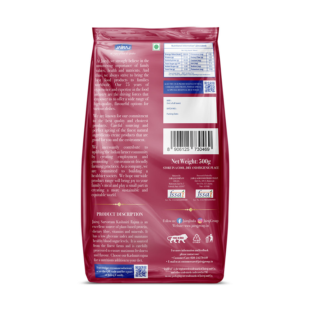 Jairaj Sarvottam Kashmiri Rajma is an excellent source of plant-based