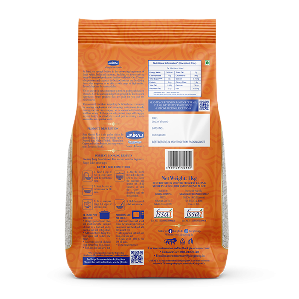 Jairaj Sarvottam Sona Masoori Rice 1 Kg